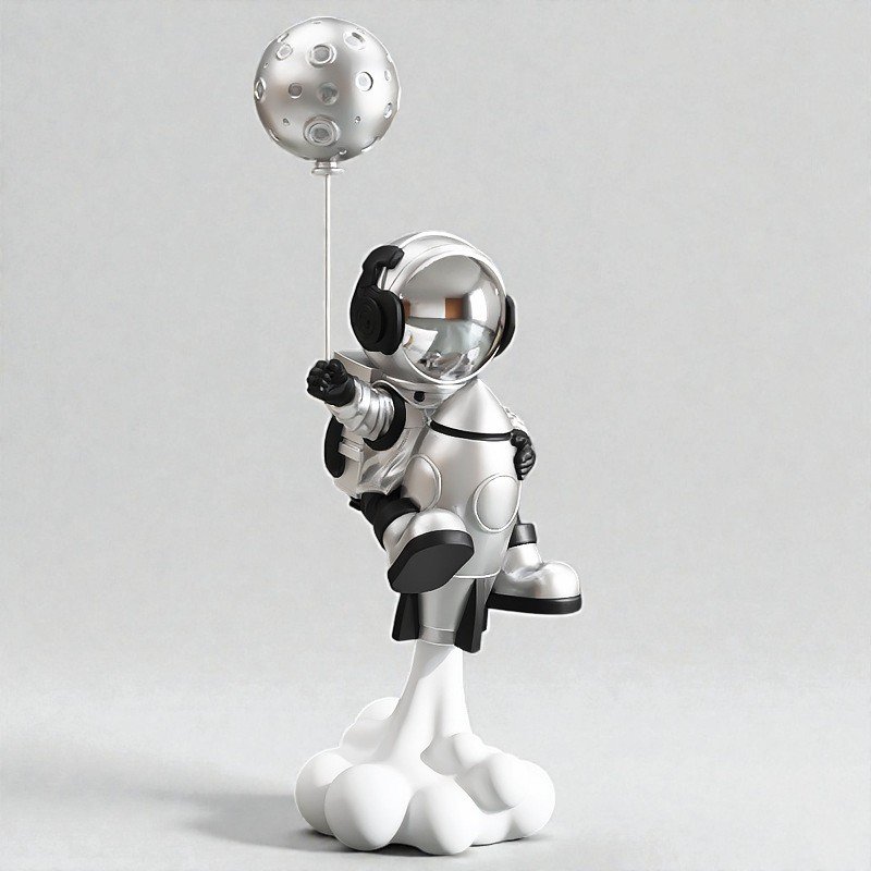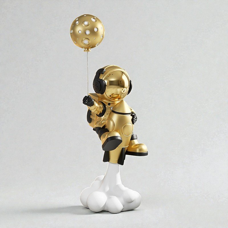 The sculpted form, elevated on a cloud base, creates a floating effect that naturally draws the eye.