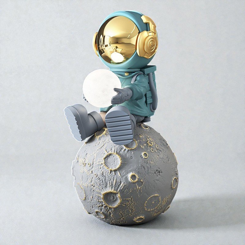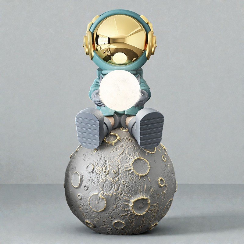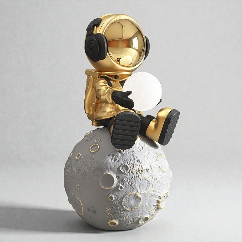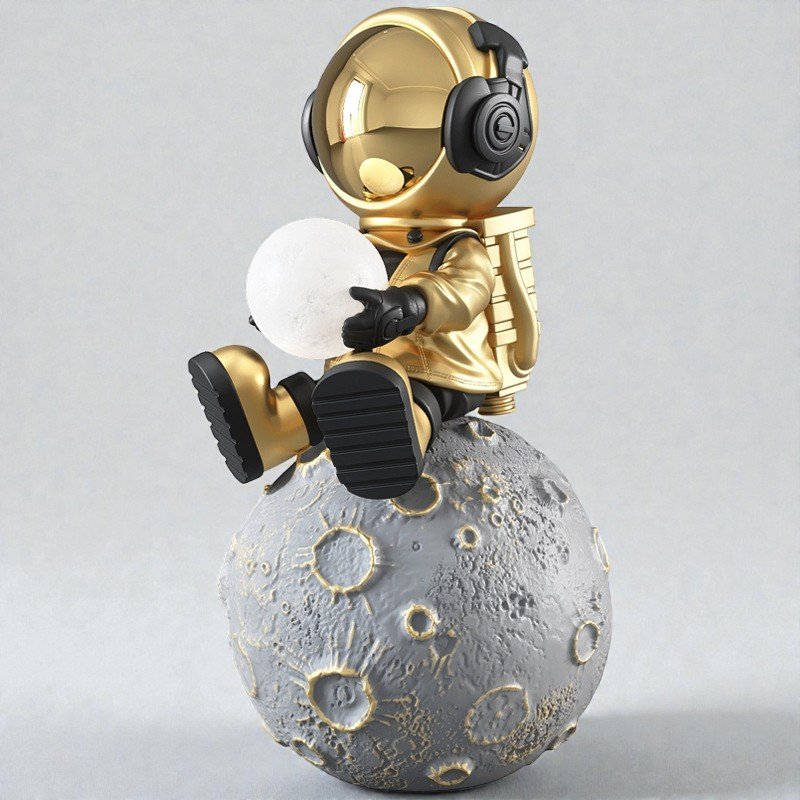 Crafted in detailed resin with a textured lunar base and a refined gold finish, this piece brings depth and balance into your space.