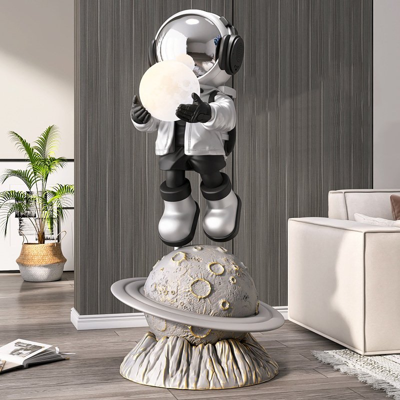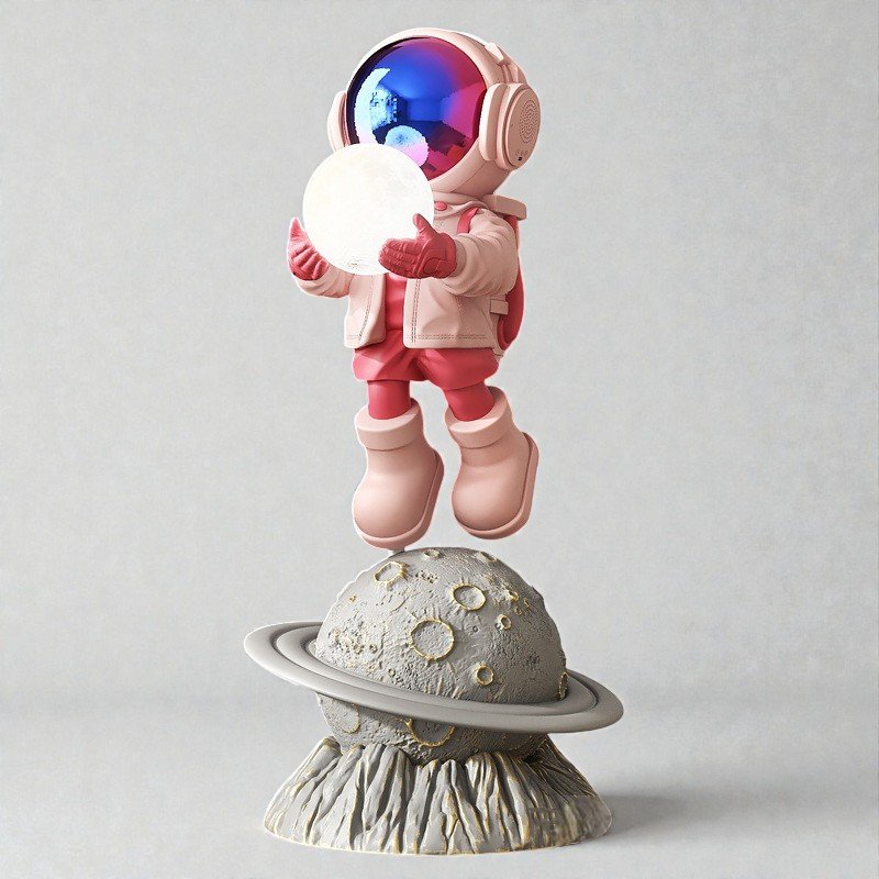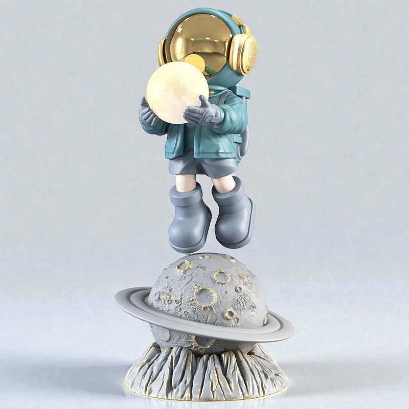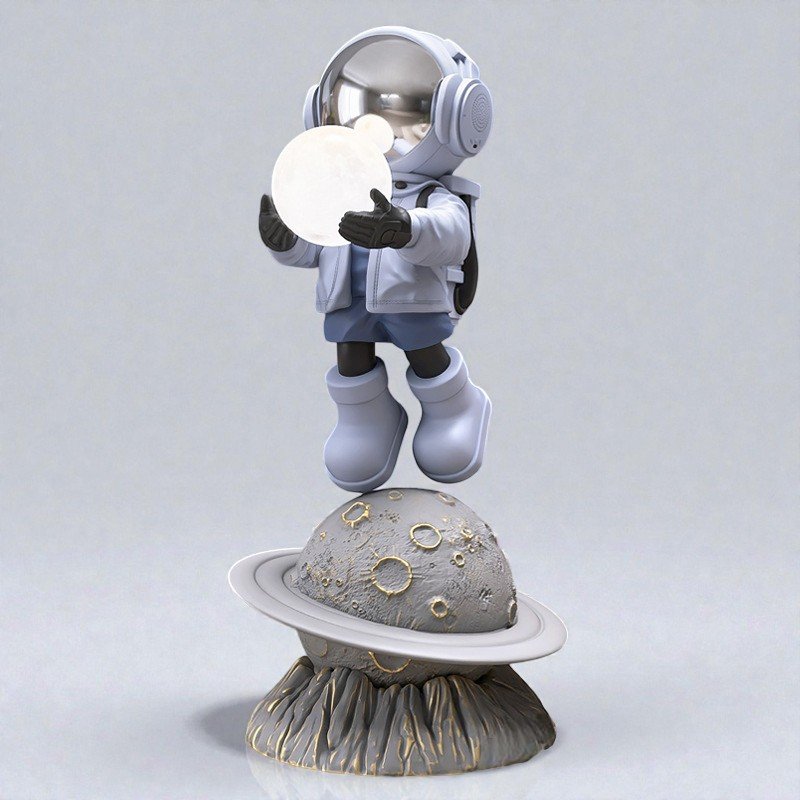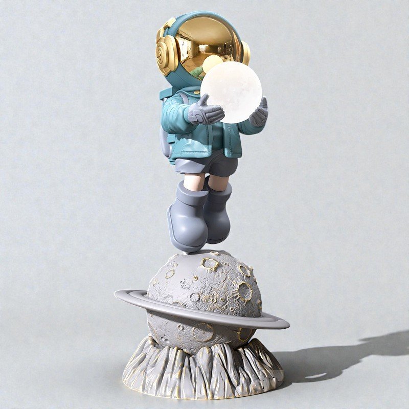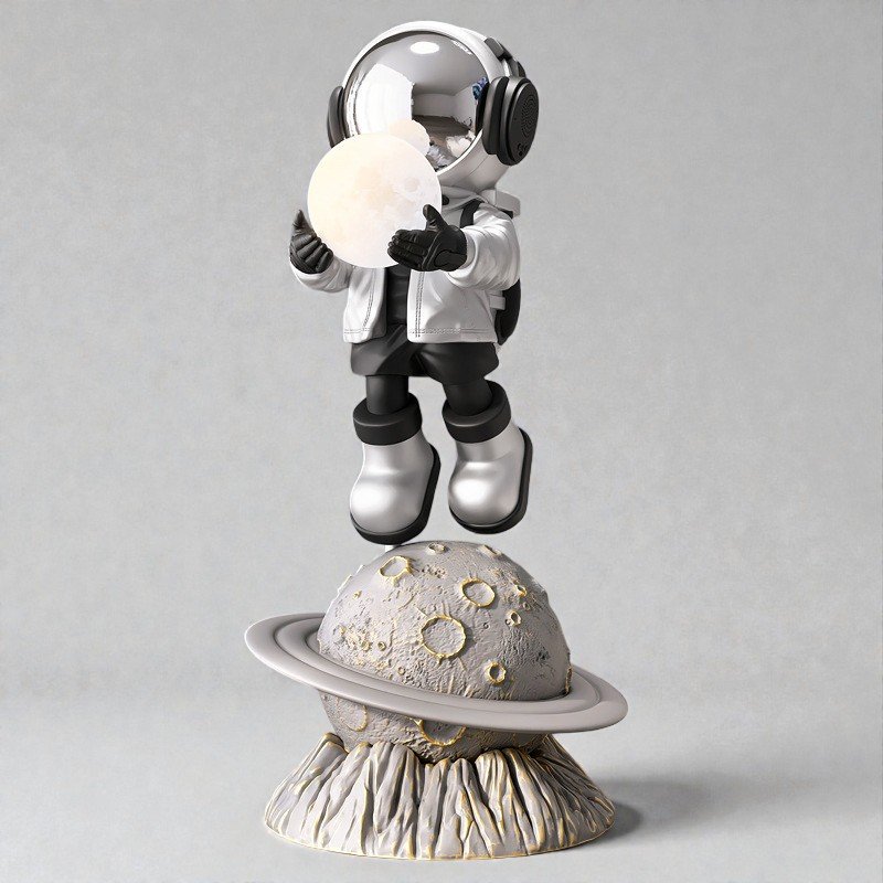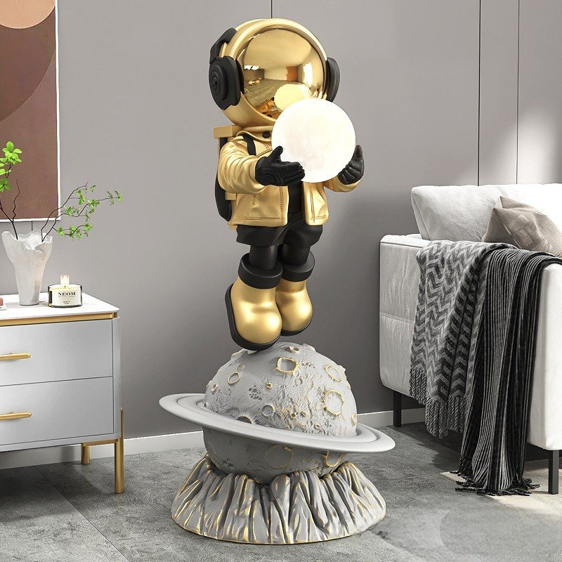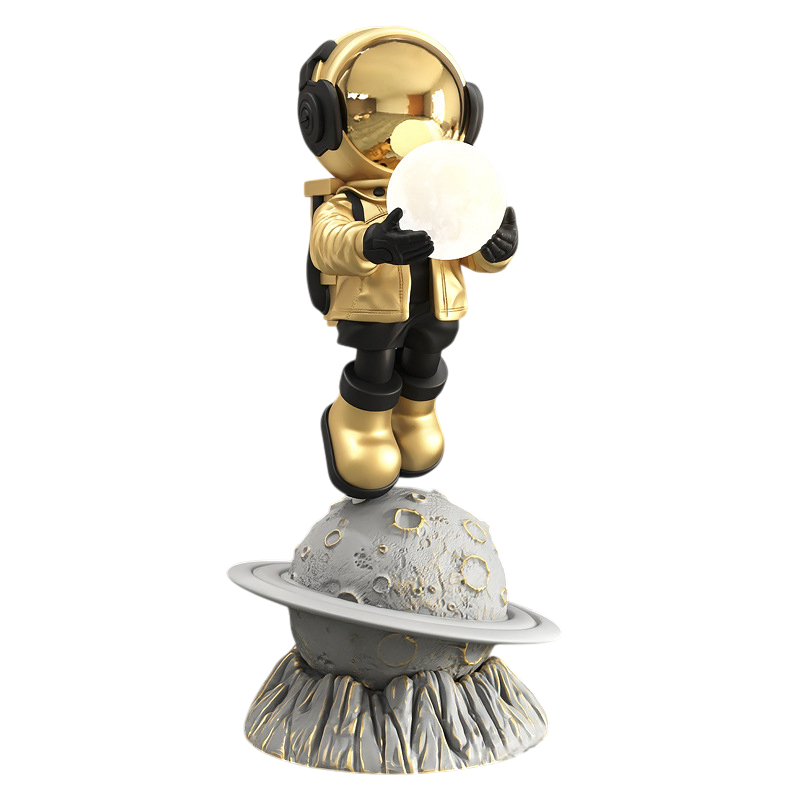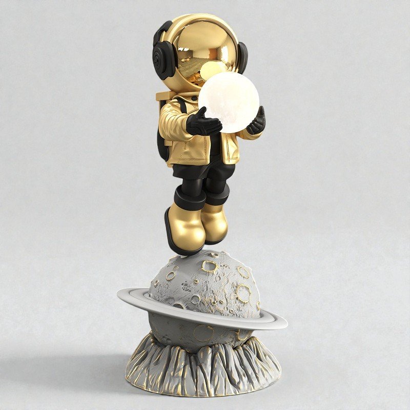 A sculptural form crafted in solid resin, finished in a refined gold tone with a textured planetary base.